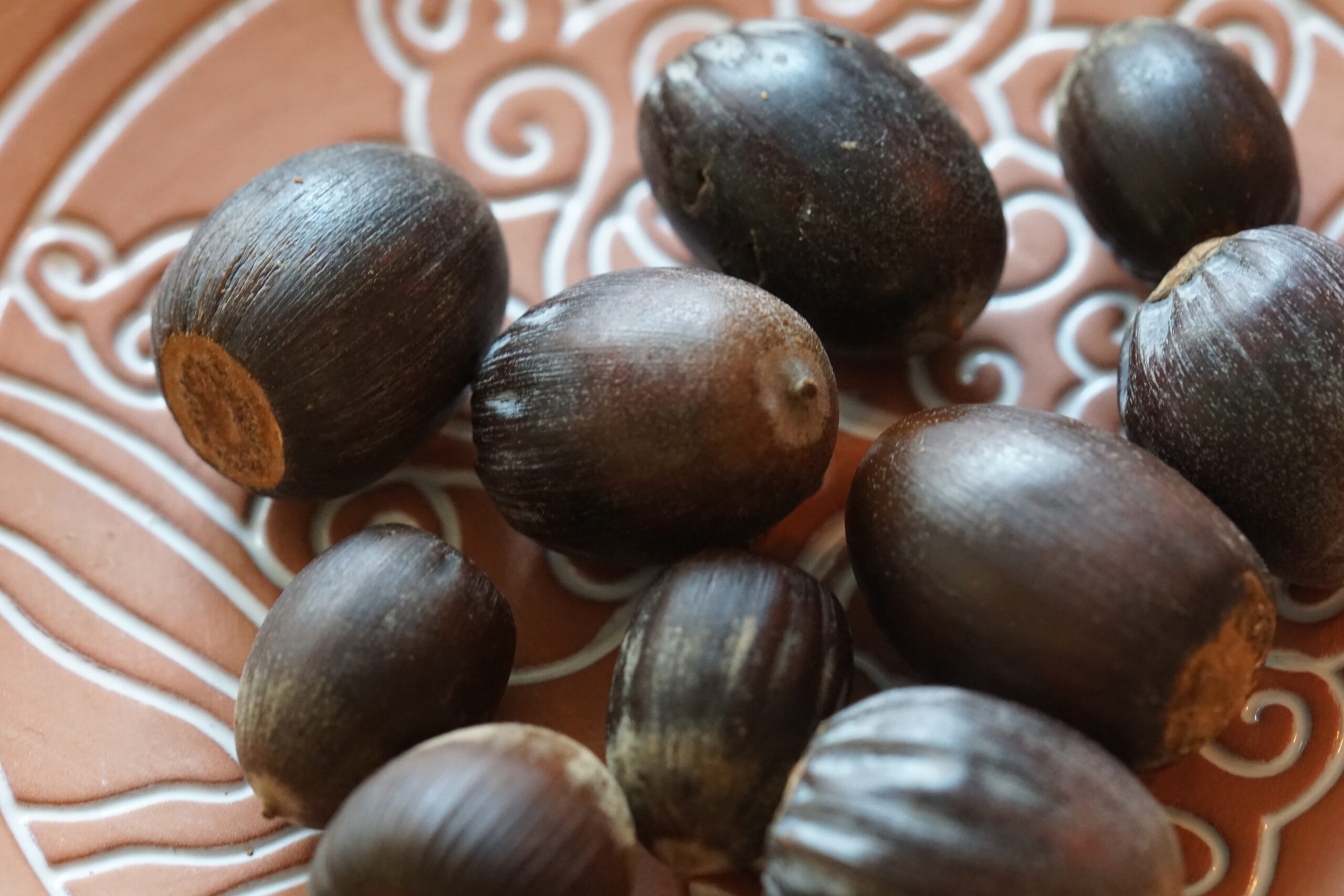 Die Eicheln stammen aus einer Ernte im Oktober 2023 (Texas, USA). Das Verbreitungsgebiet reicht von Ontario in Kanada über den Osten und der Mitte der USA bis nach Nord- und Süd-Mexiko.
